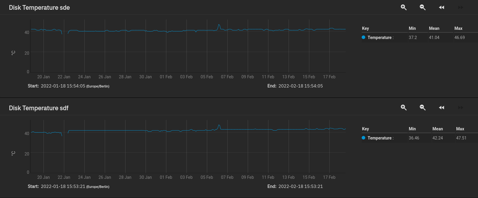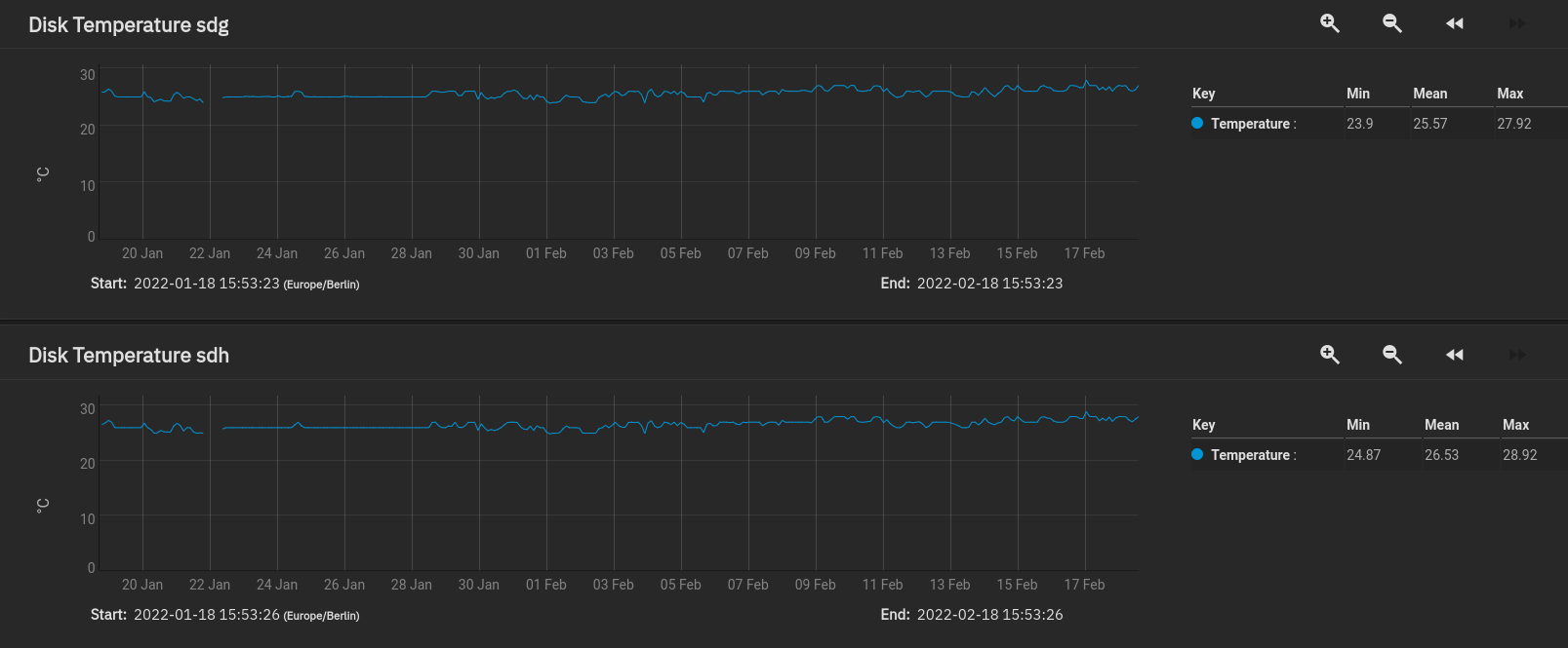 And here some graphs showing the current 6 HDDs. I did take out the 12 TB ones after the copy procedure. But you see the range.